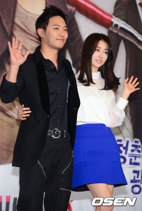 30일 오후 서울 여의도 콘래드 서울 호텔에서 진행된 KBS 2TV 새 월화드라마 ‘광고천재 이태백’ 제작발표회에서 배우 박하선과 진구가 포즈를 취하고 있다