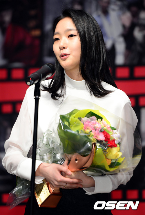 30일 오후 서울 태평로 프레스센터 국제회의장에서 열린 '제4회 올해의 영화상'에서 올해의 영화상 여우신인상을 수상한 김고은이 수상소감을 전하고 있다.