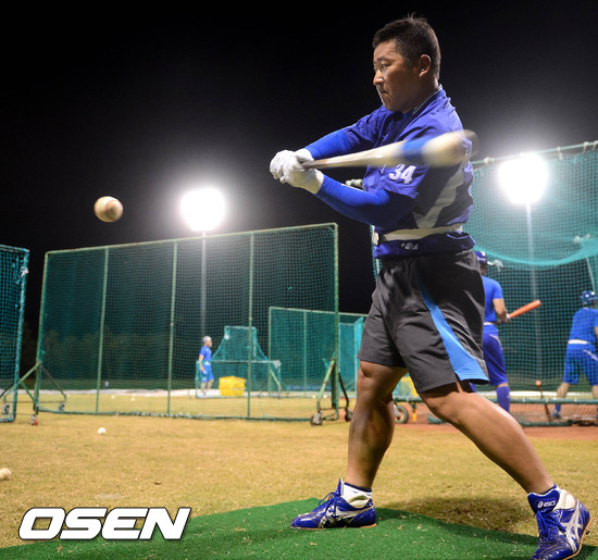 30일 밤(현지시간) 괌에 위치한 삼성 1차 전지훈련장에서 최형우가 타격 훈련을 하고 있다.