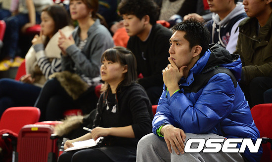 4쿼터 상무에서 제대한 기승호가 벤치에서 경기를 지켜보고 있다. /jpnews@osen.co.kr