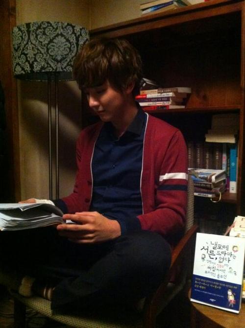 윤시윤이 출연 중인 tvN 월화드라마 '이웃집 꽃미남' 제작사 오보이 프로젝트의 공식 트위터에는 지난 30일 오후 "수요일을 싫어하는 트친님들을 위한 선물 투척! 활자를 사랑하는 시윤 님의 직찍 공개합니다"는 글과 함께 사진 한 장이 올라왔다.