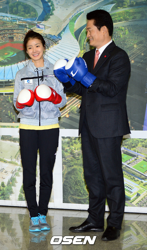 이시영이 송영길 인천시장과 포토타임을 갖고 있다.