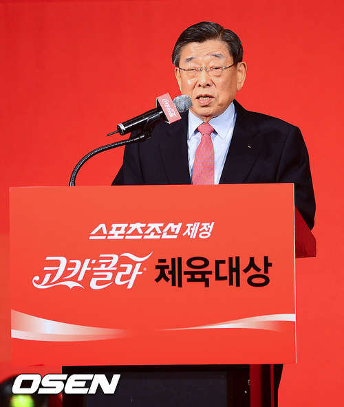 31일 서울 한남동 글랜드 하얏트에서 열린 '제18회 코카콜라 체육대상' 시상식에서 김운용 전 IOC부위원장이 축사를 하고 있다