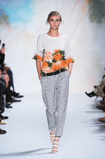 플로럴 니트는 폴앤조만의 독특한 시티룩과 13SS 컬렉션의 대표적인 콘셉트인 하와이안 룩이 절묘하게 매치됐다고 관계자는 전했다. 때 묻지 않은 화이트 컬러와 상큼한 오렌지, 그린 컬러의 대조적인 컬러 믹스로 여성스럽고 고급스러운 분위기를 자아낸다