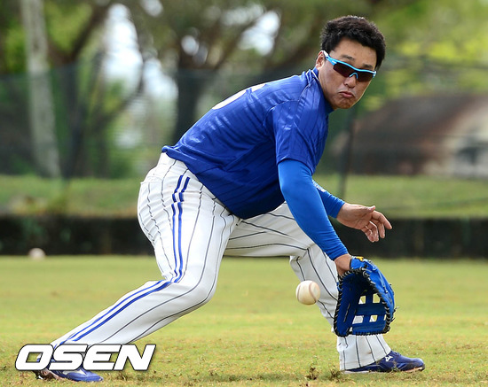 31일 오전(현지시간) 괌에 위치한 레오팔레스 삼성 1차 전지훈련장에서 이승엽이 훈련을 하고 있다.