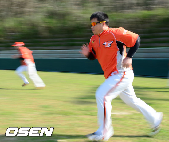 29일 일본 오키나와 고친다 구장에서 진행된 한화 이글스 2013 오키나와 전지훈련에서 마일영이 러닝훈련을 하고 있다.
