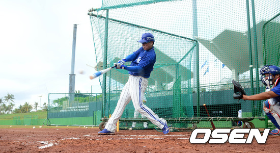 31일 오전(현지시간) 괌에 위치한 레오팔레스 삼성 1차 전지훈련장에서 이승엽이 배팅 훈련을 하고 있다.