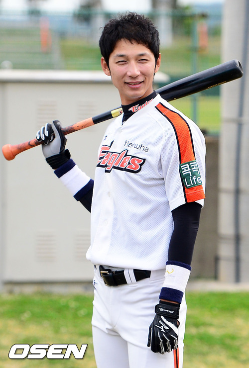 29일 일본 오키나와 고친다 구장에서 진행된 한화 이글스 2013 오키나와 전지훈련에서 추승우가 미소짓고 있다.