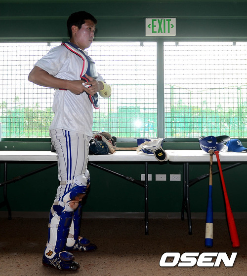 31일 오전(현지시간) 괌에 위치한 레오팔레스 삼성 1차 전지훈련장에서 이홍련이 훈련 준비를 하고 있다.