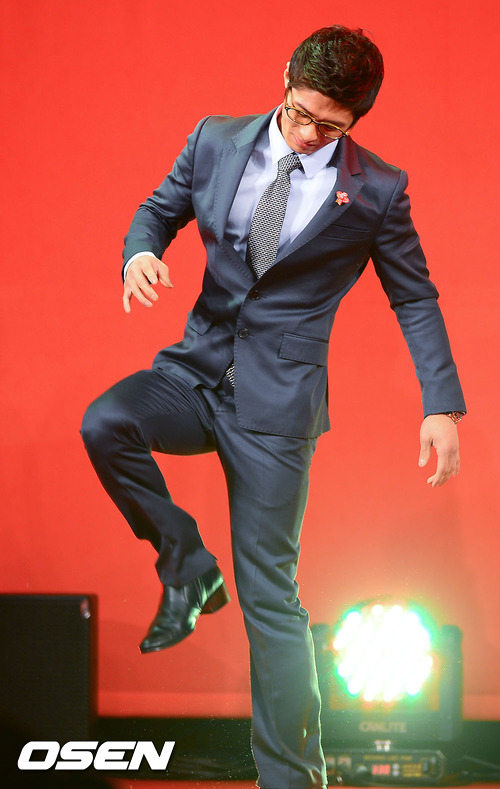 31일 서울 한남동 글랜드 하얏트에서 열린 '제18회 코카콜라 체육대상' 시상식에서 우수선수상을 수상한 양학선이 셔플댄스를 추고 있다
