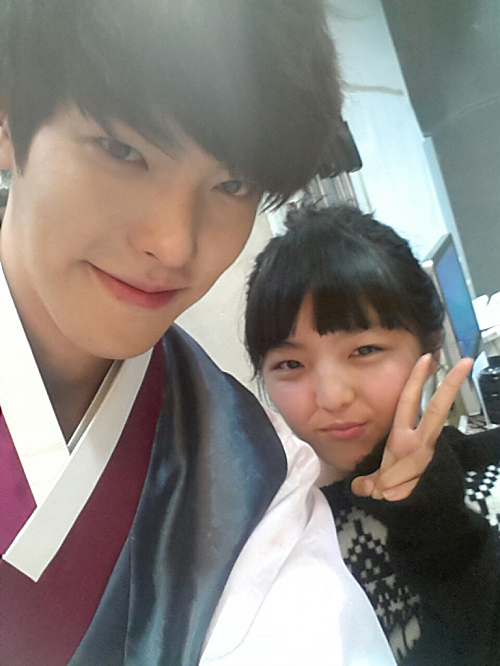 사진 속 김우빈은 한복을 입고 카메라를 응시하며 미소 짓고 있다. 또 서신애는 평범한 니트를 입고 깜찍한 브이를 그리고 있어 눈길을 끈다.