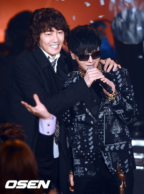 31일 오후 서울 송파구 방이동 SK올림픽핸드볼경기장에서 열린 '제22회 하이원 서울가요대상' (2012 Seoul Music Awards) 시상식에서 공연문화상을 수상한 김장훈이 예성과 함께 노래를 부르고 있다