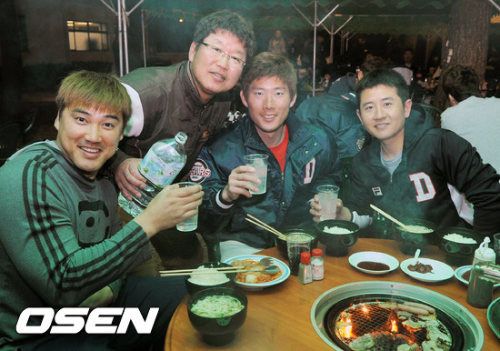 31일 오후 2013 미야자키 전지훈련 중인 두산 베어스 선수들 및 코칭스탭들이 선수단 숙소 라구제 히토츠바에서 풀 사이드 바비큐파티를 가졌다.