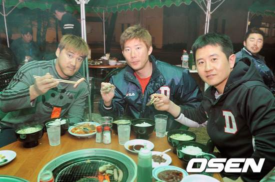 31일 오후 2013 미야자키 전지훈련 중인 두산 베어스 선수들 및 코칭스탭들이 선수단 숙소 라구제 히토츠바에서 풀 사이드 바비큐파티를 가졌다.