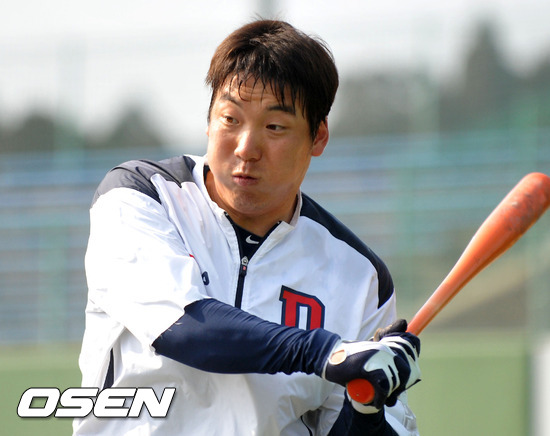 31일 일본 미야자키 기요다케 구장에 진행된 두산 베어스 2013 미야자키 전지훈련에서 김현수가 배팅훈련을 하고 있다.