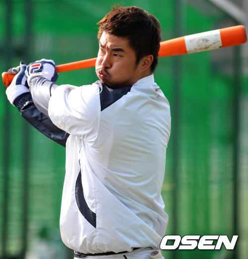 31일 일본 미야자키 기요다케 구장에 진행된 두산 베어스 2013 미야자키 전지훈련에서 오재원이 배팅훈련을 하고 있다.