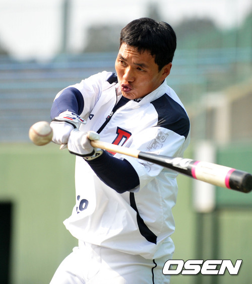 31일 일본 미야자키 기요다케 구장에 진행된 두산 베어스 2013 미야자키 전지훈련에서 이종욱이 배팅훈련을 하고 있다.