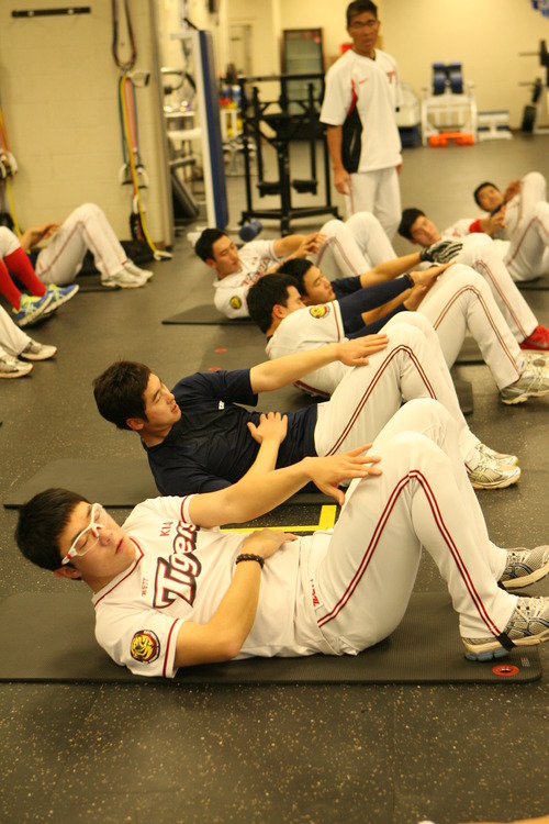 지난해 부상이라는 장애물에 시달렸던 KIA가 하나마스 코치 영입 효과를 볼 수 있을까. KIA 선수들은 고된 운동에 힘들어하면서도 자신들을 괴롭혔던 부상에서 벗어나기 위해 하나마쓰 코치와 함께 구슬땀을 흘리고 있다.