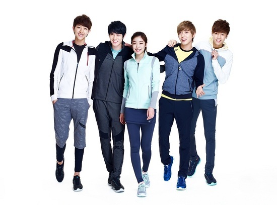 인기 밴드 씨엔블루가 김연아와 함께 광고를 찍었다.