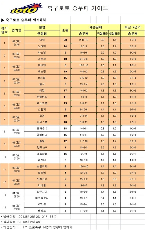 박주영이 속한 셀타비고는 오사수나와 원정경기를 갖는 가운데 오사수나의 승리 예상(47.53%)이 셀타비고 승리(21.06%)보다 앞선 것으로 예측돼 힘든 원정길이 될 것으로 예상됐다. 축구토토 승무패 5회차 게임은 2일 오후 9시 35분에 발매가 마감된다.