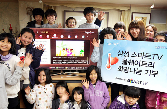 삼성전자가 지난 30일 '올쉐어트리 희망 나눔 이벤트'에 참여한 2만 여 명의 희망을 담아 다문화 가정 어린이 공부방에 50형 스마트TV 3대를 증정했다.
