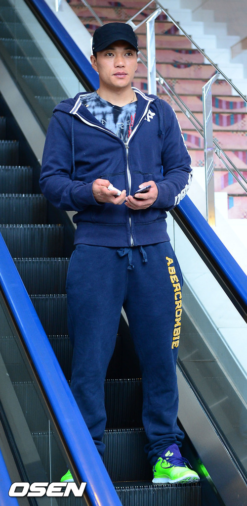 이종욱이 에스컬레이터를 타고 내려오고 있다.