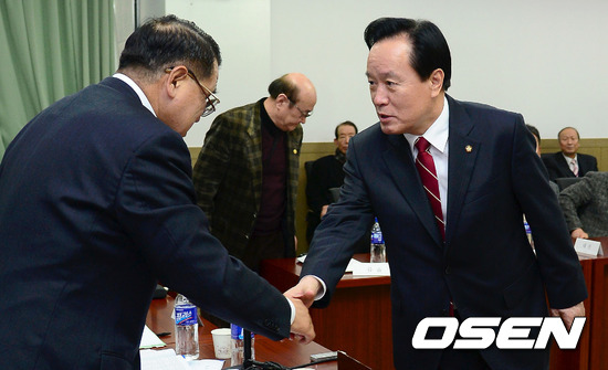 대한야구협회 이병석 신임 회장이 대의원들과 악수를 나누고 있다.