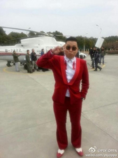 싸이는 지난달 31일 자신의 중국 SNS 웨이보에 “'SMG 갈라쇼' 촬영 중. 저 헬기 타고 날아갑니다!”라는 글과 함께 한 장의 사진을 게재했다.