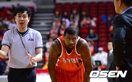 1일 오후 인천 삼산 월드체육관에서 '2012-2013시즌 KB국민카드 프로농구' 인천 전자랜드와 고양 오리온스의 경기, 1쿼터 전자랜드 포웰이 심판의 판정에 항의하는 오리온스 추일승 감독을 바라보고 있다.