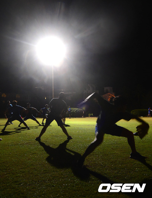 훈련 휴식일인 1일 밤(현지시간) 삼성 선수들이 괌에 위치한 레오팔레스 1차 전지훈련장에서 쉐도우 피칭을 하고 있다.