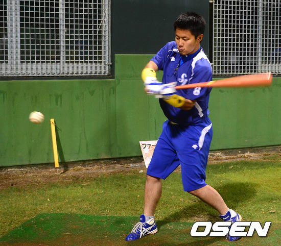 훈련 휴식일인 1일 밤(현지시간) 괌에 위치한 레오팔레스 삼성 1차 전지훈련장에서 우동균이 타격 훈련을 하고 있다.