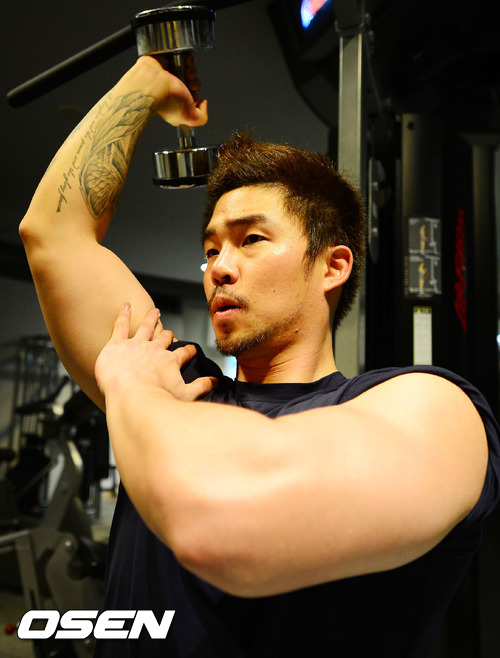 두산 오재원이 선수단 숙소 라구제 히토츠바의 트레이닝 장에서 훈련을 하고 있다.