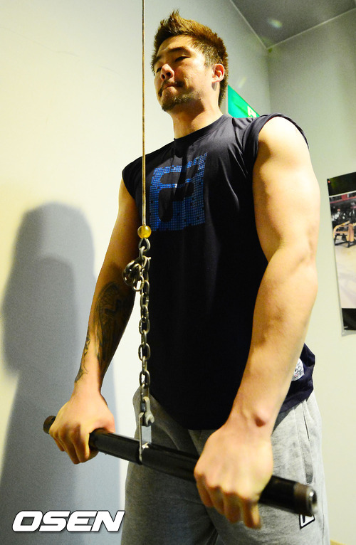 두산 오재원이 선수단 숙소 라구제 히토츠바의 트레이닝 장에서 훈련을 하고 있다.