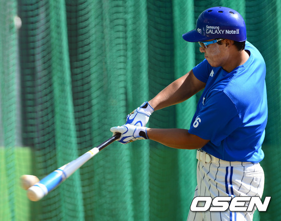 2일 오전(현지시간) 괌에 위치한 레오팔레스 삼성 1차 전지훈련장에서 이승엽이 타격 훈련을 하고 있다.
