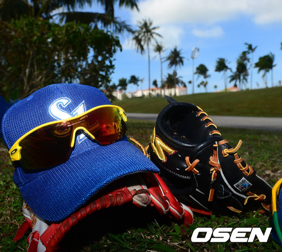 2일 오전(현지시간) 괌에 위치한 레오팔레스 삼성 1차 전지훈련장에 선수들의 장비들이 잔디위에 놓여 있다.