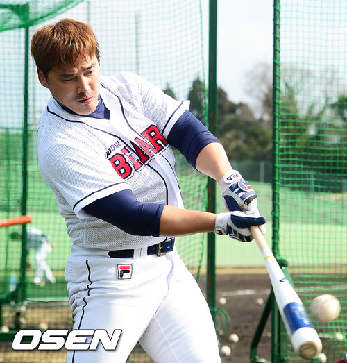 2일 일본 미야자키 기요다케 구장에서 진행된 두산 베어스 2013 미야자키 전지훈련에서 홍성흔이 타격훈련을 하고 있다.