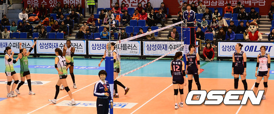 2세트 KGC 인삼공사 선수들이 비디오 판독 결과 GS 칼텍스에 득점을 허용하고 세트를 빼앗기며 아쉬워하고 있다./jpnews@osen.co.kr