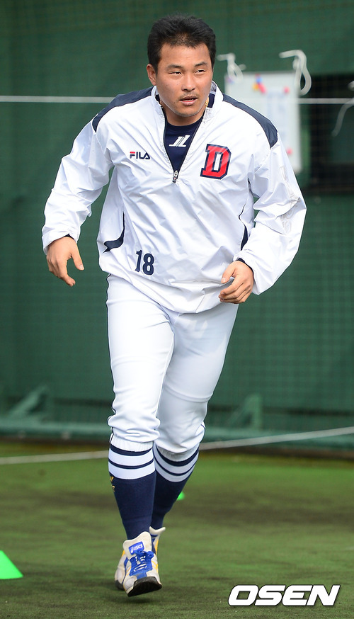 2일 일본 미야자키 기요다케 구장에서 진행된 두산 베어스 2013 미야자키 전지훈련에서 김동주가 러닝훈련을 하고 있다.