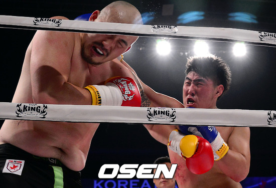 K-1 코리아맥스 2013 무림풍 VS 더 칸' 대회에서 박용수가 윈펭센과 치열한 경기를 벌이고 있다.