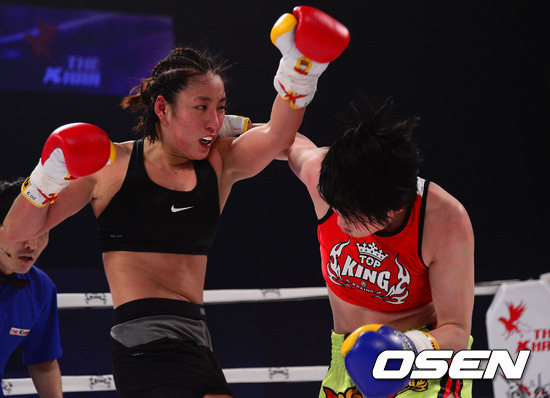 K-1 코리아맥스 2013 무림풍 VS 더 칸' 대회에서 임수정이 마오닝과 치열한 경기를 펼치고 있다.