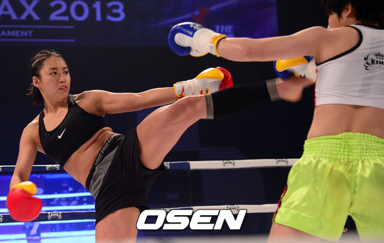 2일 오후 서울 방이동 올림픽공원 올림픽홀에서 열린 'K-1 코리아맥스 2013 무림풍 VS 더 칸'대회에서 임수정과 마오닝이 치열한 경기를 펼치고 있다.