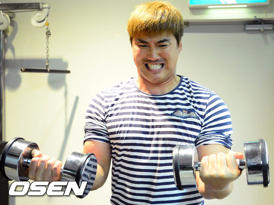 2일 일본 미야자키 기요다케 구장에서 진행된 두산 베어스 2013 미야자키 전지훈련을 마치고 홍성흔이 선수단 숙소 라구제 히토츠바의 웨이트장에서 훈련을 하고 있다