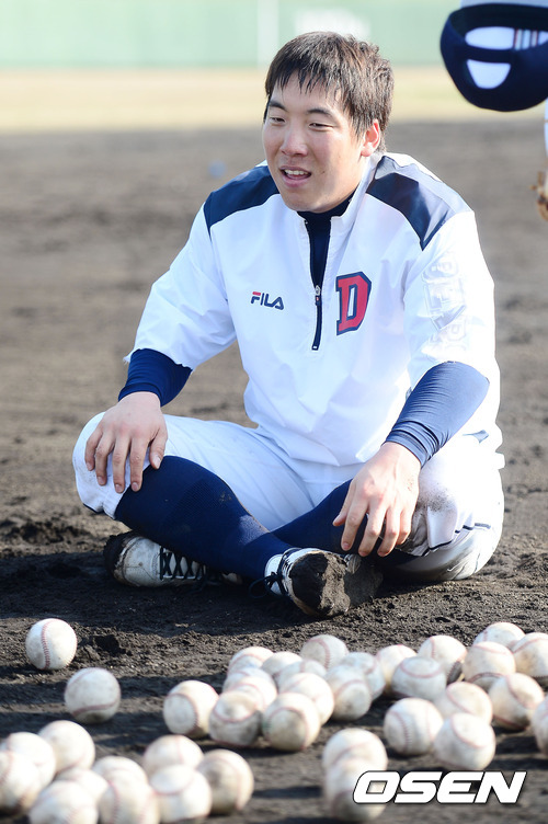 2일 일본 미야자키 기요다케 구장에서 진행된 두산 베어스 2013 미야자키 전지훈련을 마치고 김현수가 휴식을 취하고 있다.