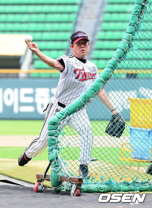 배팅볼을 던지고 있는 조계현 LG 트윈스 수석코치.
