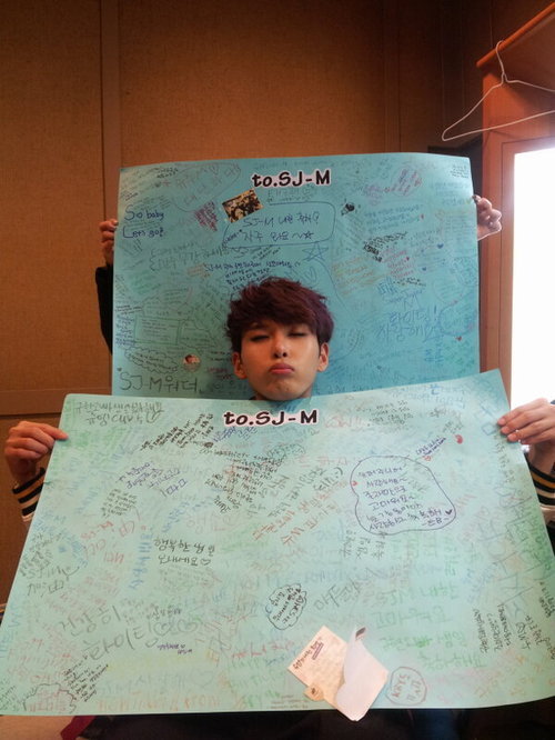그룹 슈퍼주니어의 려욱이 팬들에게 받은 롤링페이퍼를 들고 인증샷을 찍었다.