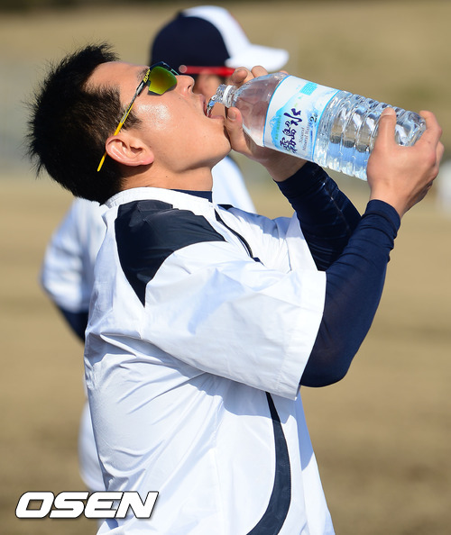 3일 일본 미야자키 기요다케 구장에서 진행되는 두산 베어스 2013 미야자키 전지훈련에서 두산 손시헌이 훈련 중 물을 마시고 있다.