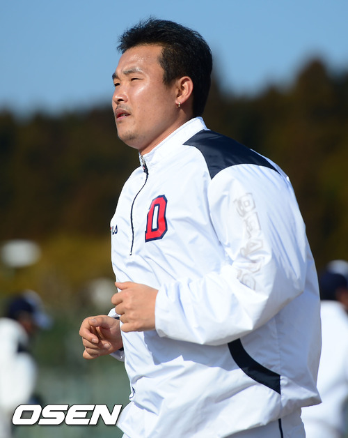 3일 일본 미야자키 기요다케 구장에서 진행되는 두산 베어스 2013 미야자키 전지훈련에서 두산 김동주가 러닝훈련을 하고 있다.
