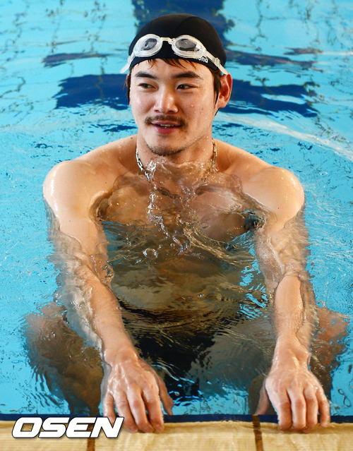 3일 일본 미야자키 기요다케 구장에서 진행된 두산 베어스 2013 미야자키 전지훈련을 마치고 노경은이 선수단 숙소 라구제 히토츠바의 수영장에서 수영을 하고 있다.