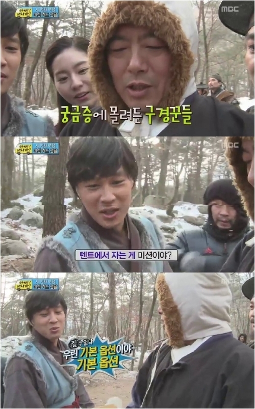 성동일은 3일 방송된 MBC 예능프로그램 ‘일밤-아빠 어디가’에서 제작진으로부터 한겨울 텐트취침 미션을 받았다. 성동일은 때마침 KBS 2TV 수목드라마 ‘전우치’ 촬영 중이었고, KBS 2TV 야외 버라이어티 프로그램 ‘해피선데이-1박2일’에 출연 중인 차태현이 호기심 가득한 눈으로 바라봤다.