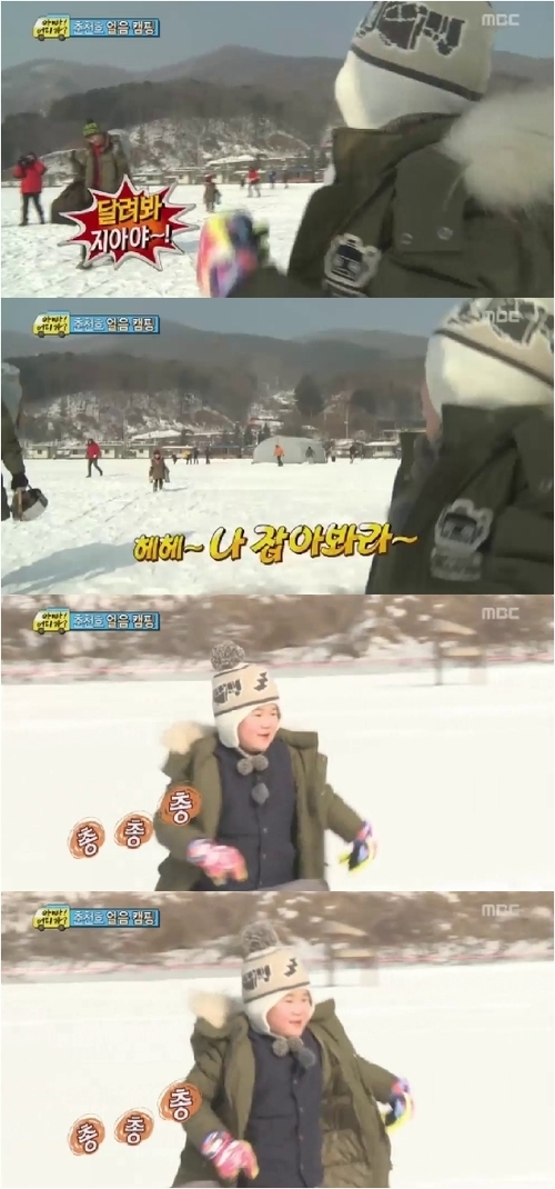 윤후는 3일 방송된 MBC 예능프로그램 ‘일밤-아빠 어디가’에서 단단하게 얼은 원평호에서 텐트를 치기에 앞서 좋아하는 송지아를 불렀다. “지아야~나 잡아봐라”라면서 로맨스 드라마의 단골대화이자 고전적인 발언을 한 것.